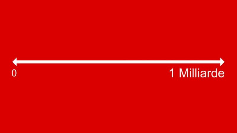 Wie schwer es Menschen fällt, Zahlen einzuschätzen, zeigt ein einfaches Experiment. Wenn ein Strich links bei Null beginnt und rechts bei einer Milliarde aufhört – wo würden Sie dann eine Million einzeichnen? Die meisten Menschen antworten hier: ungefähr in der Mitte. Und könnten kaum falscher liegen.
