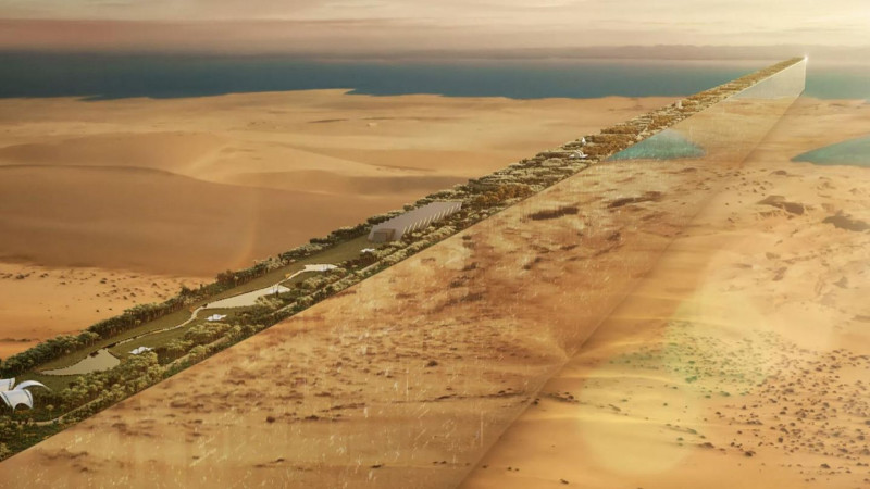 Das Konzept war mehr als ambitioniert. The Line wurde als 170 Kilometer langes, 200 Meter breites und durchgehend 500 Meter hohes Gebäude geplant, in dem mehr als neun Millionen Menschen leben sollten. Die Stadt sollte auf im Innern in vertikalen Schächten erbauten Boulevards alles bieten, was Menschen im Alltag brauchen.