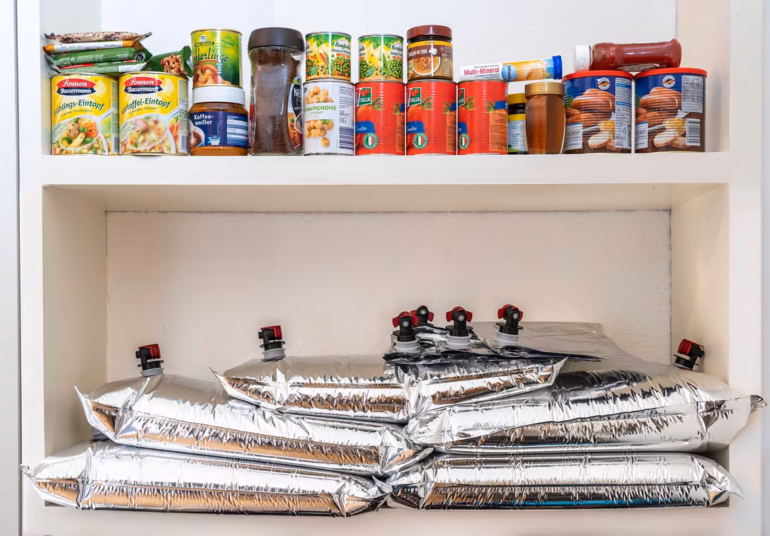 Vorratskammer mit lang haltbaren Lebensmitteln und TrinkwasserBildrechte: picture alliance / Jochen TackNeues Gesetz nimmt die großen Versorger in die Pflicht