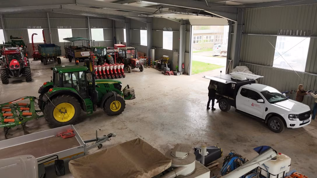 Der Pickup steht in der Landmaschinenhalle der Hochschule Anhalt.Bildrechte: MITTELDEUTSCHER RUNDFUNKAgrarforschung ist direkt vor Ort viel effizienter